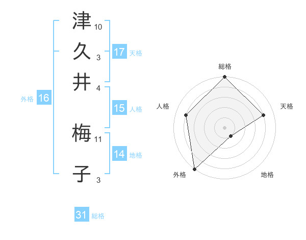 津久井 梅子さんの総格は31画の5点!