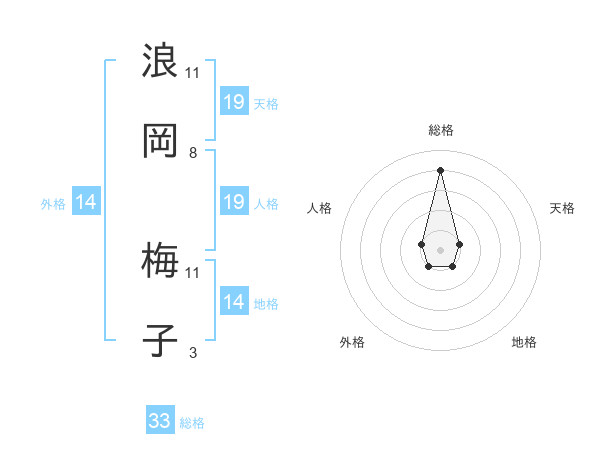 浪岡 梅子さんの人格は19画の1点!