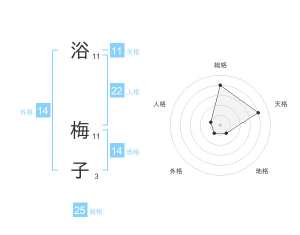 浴 梅子さんの人格は22画の1点!
