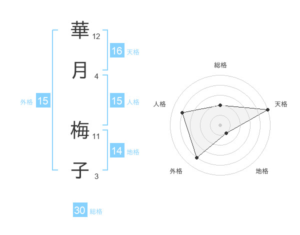 華月 梅子さんの外格は15画の4点!