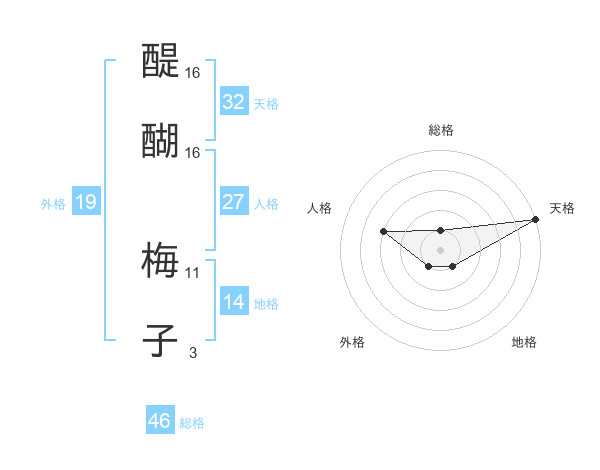 醍醐 梅子さんの天格は32画の5点!
