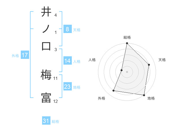 井ノ口 梅富さんを姓名の画数から五運を鑑定