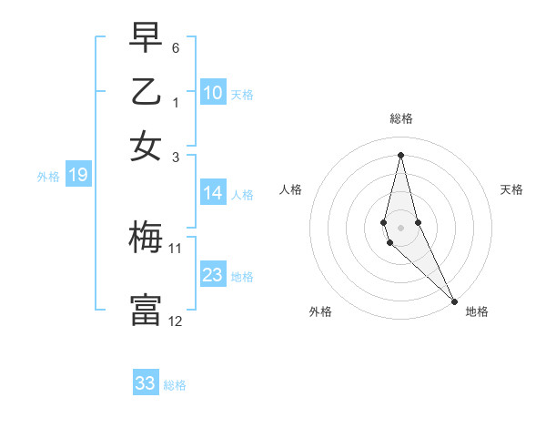 早乙女 梅富さんを姓名の画数から五運を鑑定