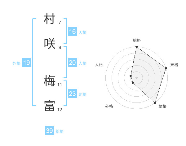 村咲 梅富さんを姓名の画数から五運を鑑定