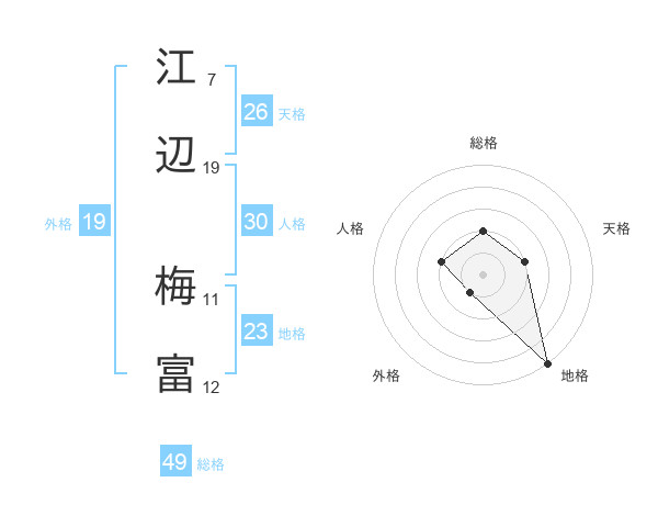 江辺 梅富さんの総格は49画の2点!