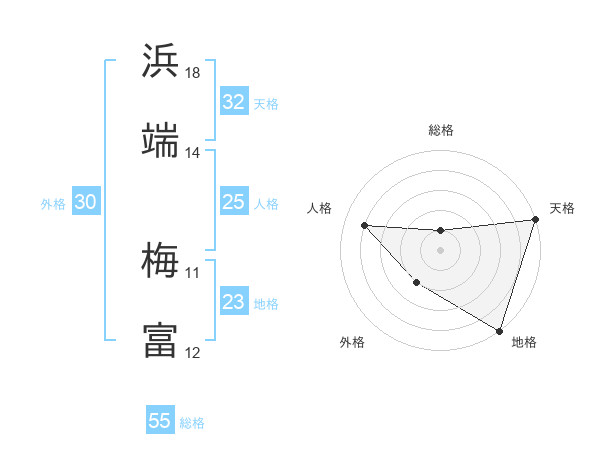 浜端 梅富さんを姓名の画数から五運を鑑定