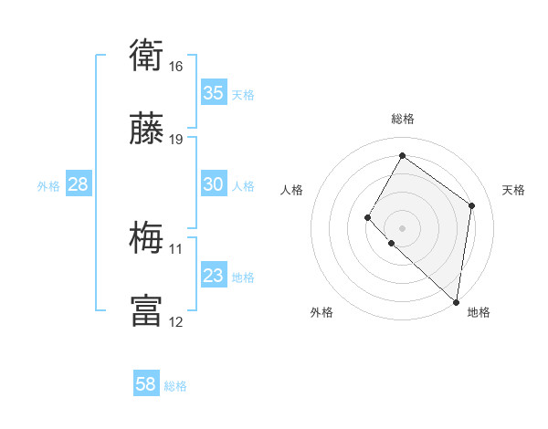 衛藤 梅富さんを姓名の画数から五運を鑑定
