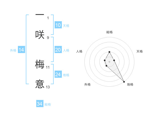 一咲 梅意さんを姓名の画数から五運を鑑定
