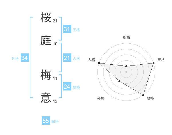 桜庭 梅意さんの総格は55画の1点!