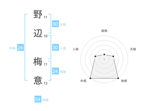 野辺 梅意さんの総格は54画の1点!