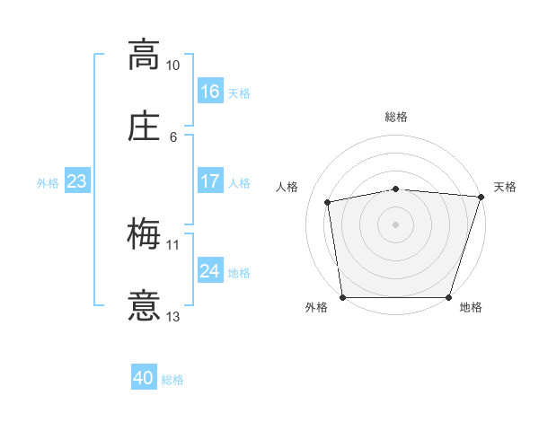 高庄 梅意さんを姓名の画数から五運を鑑定