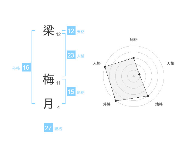 梁 梅月さんの総格は27画の3点!