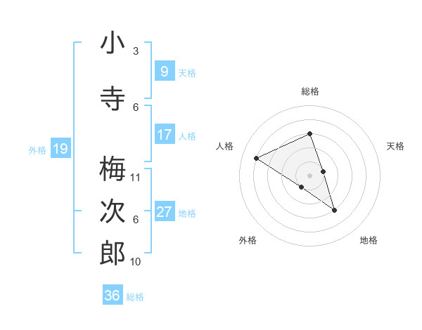 小寺 梅次郎さんを姓名の画数から五運を鑑定