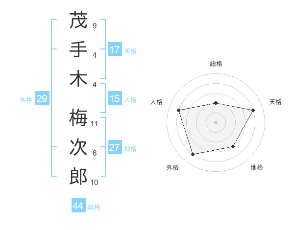 茂手木 梅次郎さんを姓名の画数から五運を鑑定