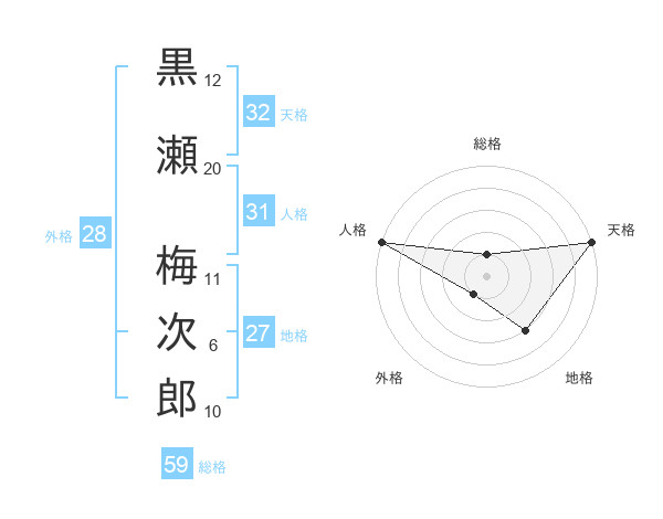 黒瀬 梅次郎さんを姓名の画数から五運を鑑定
