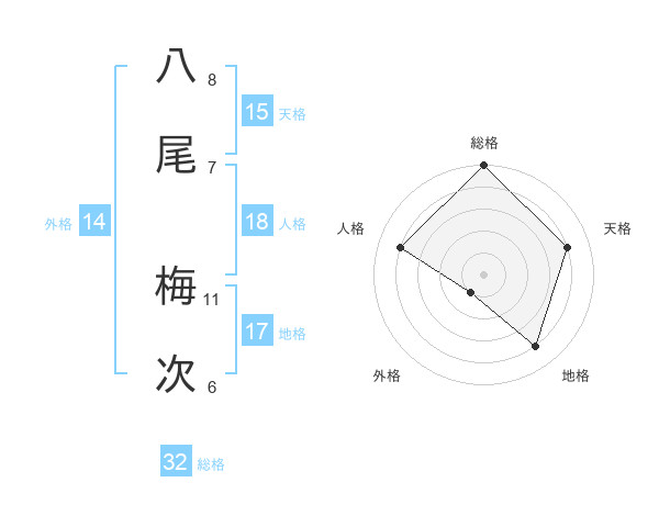 八尾 梅次さんの総格は32画の5点!