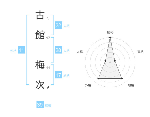 古館 梅次さんの総格は39画の5点!