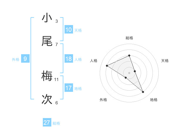 小尾 梅次さんの総格は27画の3点!