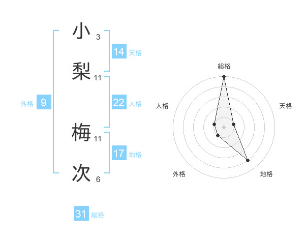 小梨 梅次さんを姓名の画数から五運を鑑定