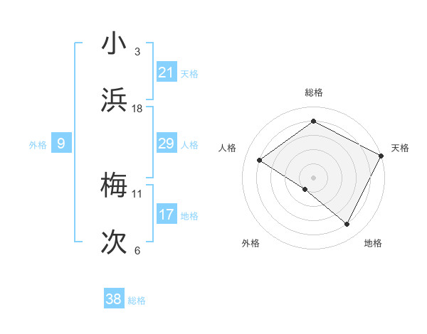 小浜 梅次さんの総格は38画の4点!