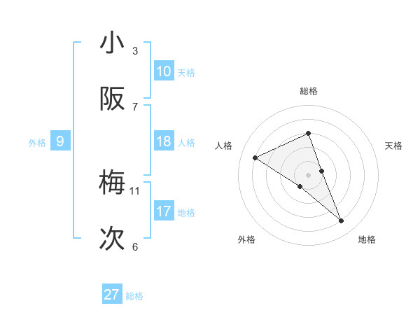 小阪 梅次さんを姓名の画数から五運を鑑定