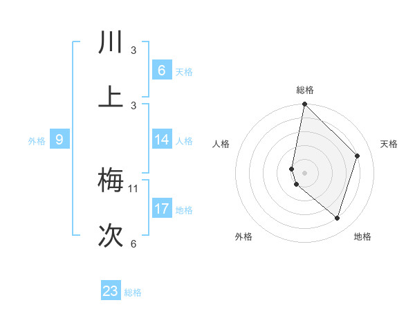 川上 梅次さんの総格は23画の5点!