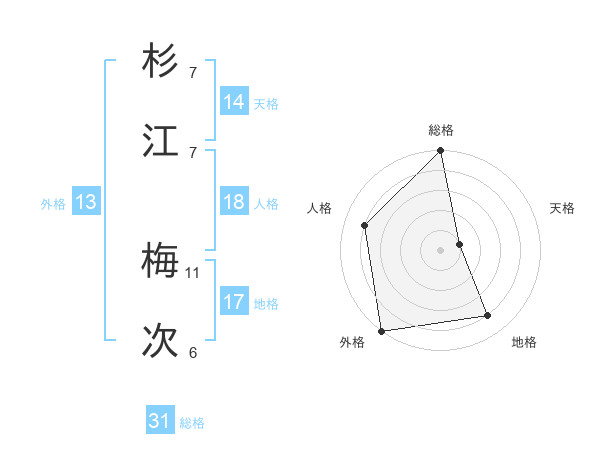 杉江 梅次さんを姓名の画数から五運を鑑定