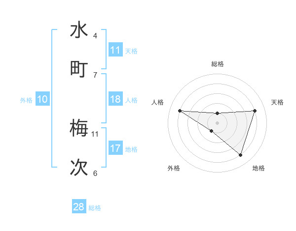 家系が持つ宿命的な運勢を表します。祖先から受け継いだ苗字ですので自分の力が及びません。家柄を象徴します。