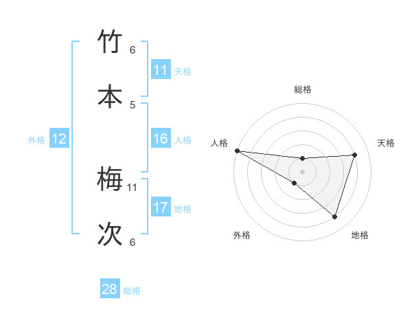 竹本 梅次さんの天格は11画の4点!