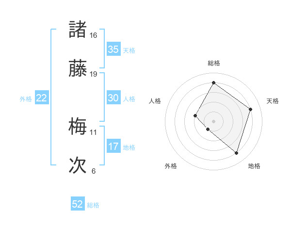 諸藤 梅次さんを姓名の画数から五運を鑑定