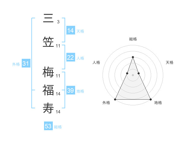 三笠 梅福寿さんの総格は53画の3点!