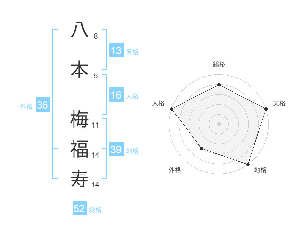 八本 梅福寿さんを姓名の画数から五運を鑑定