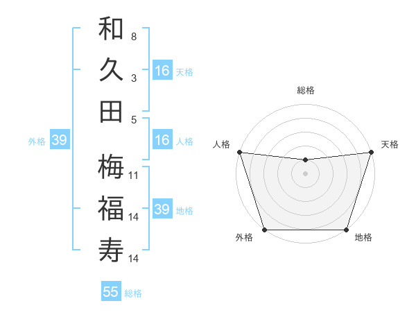 和久田 梅福寿さんを姓名の画数から五運を鑑定