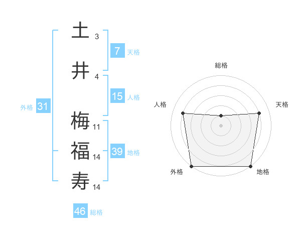 土井 梅福寿さんを姓名の画数から五運を鑑定