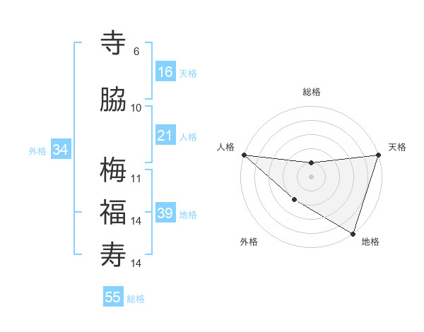 寺脇 梅福寿さんの天格は16画の5点!