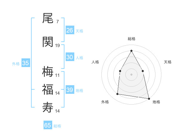尾関 梅福寿さんの総格は65画の4点