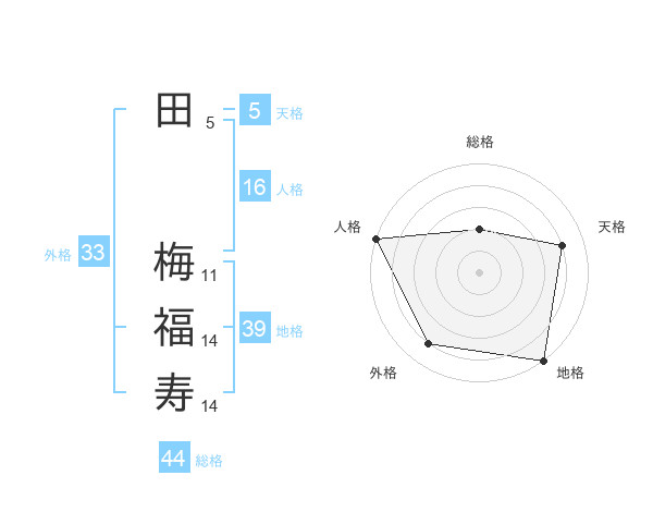 田 梅福寿さんの総格は44画の2点!