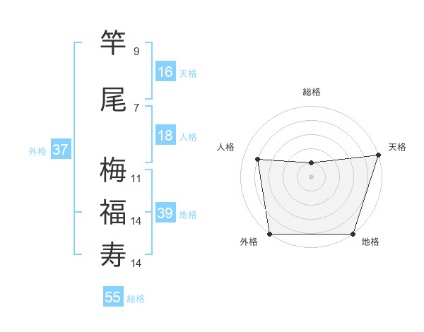 竿尾 梅福寿さんの総格は55画の1点!