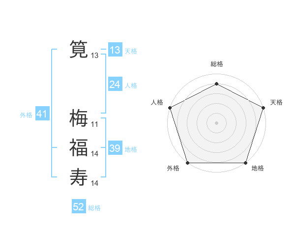 筧 梅福寿さんの総格は52画の4点!