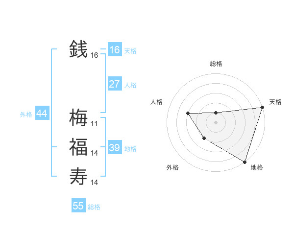 銭 梅福寿さんを姓名の画数から五運を鑑定