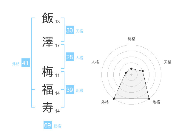 飯澤 梅福寿さんの総格は69画の1点!