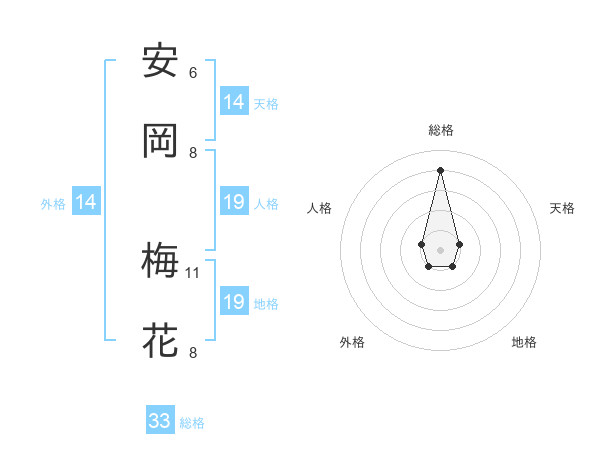 安岡 梅花さんを姓名の画数から五運を鑑定