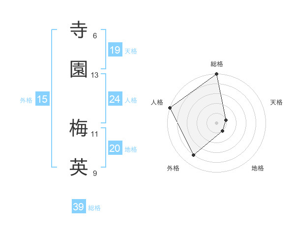 寺園 梅英さんを姓名の画数から五運を鑑定