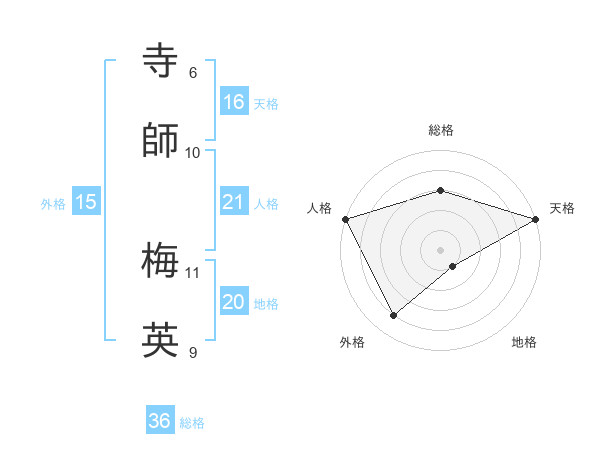 寺師 梅英さんの天格は16画の5点!