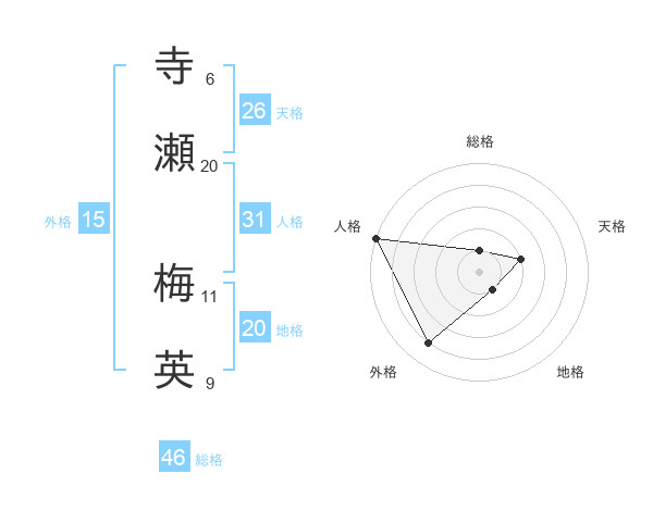 寺瀬 梅英さんの総格は46画の1点!