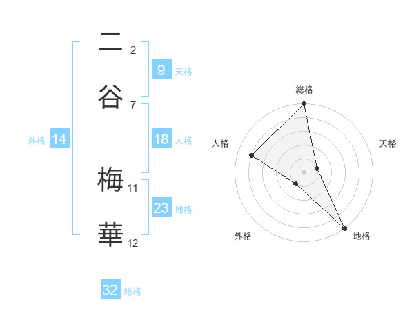 二谷 梅華さんの総格は32画の5点!