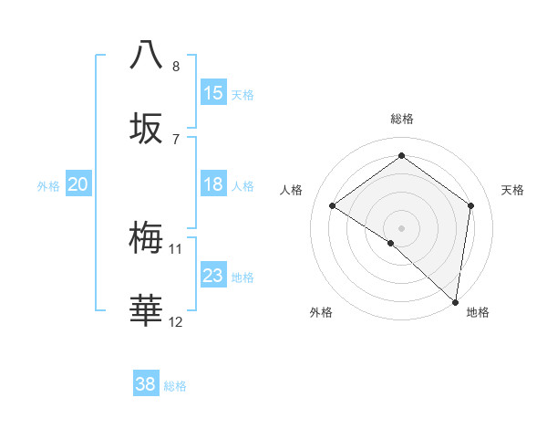 八坂 梅華さんの総格は38画の4点!