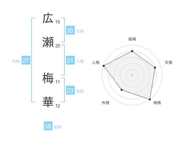広瀬 梅華さんの総格は58画の4点!