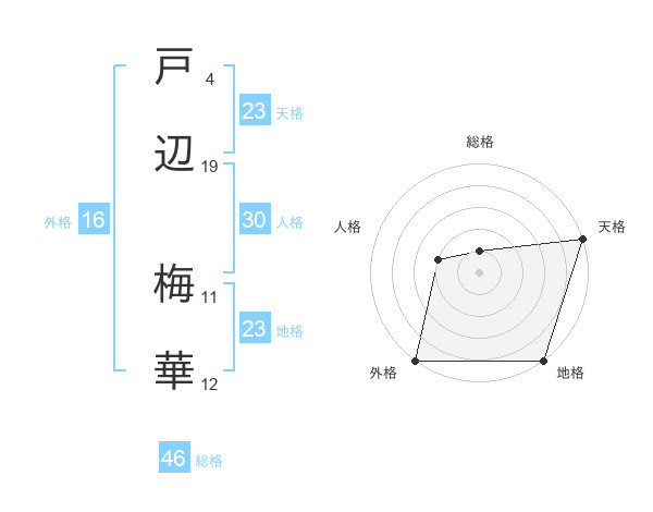 戸辺 梅華さんの地格は23画の5点!
