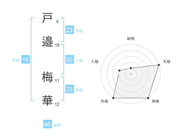 戸邉 梅華さんを姓名の画数から五運を鑑定